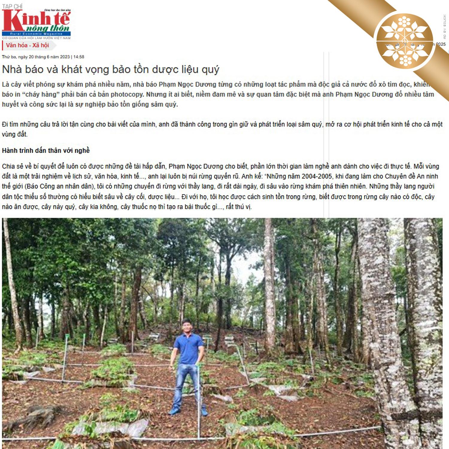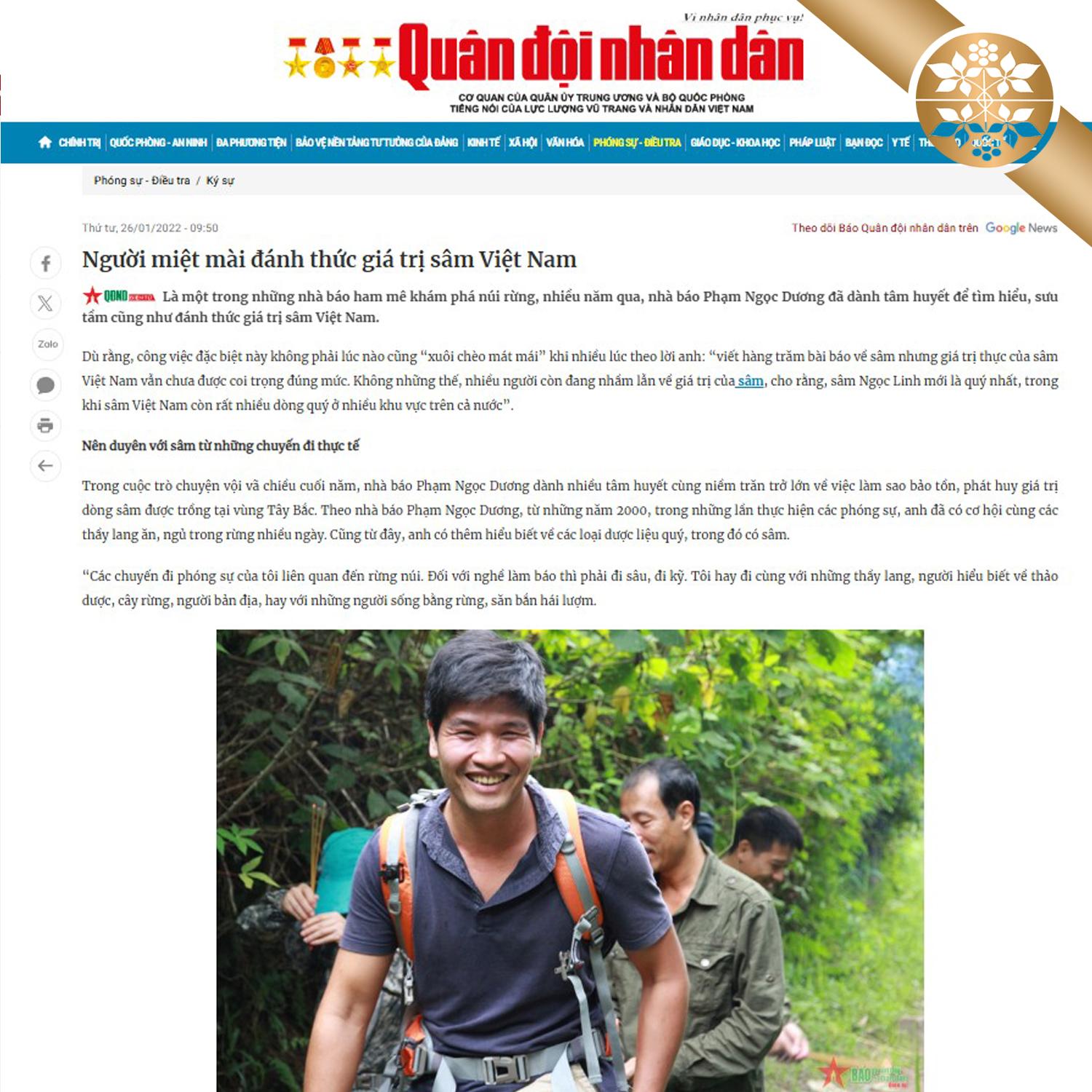 “Có lẽ tôi là nhà báo từng viết về sâm, tam thất và dược liệu khác nhiều nhất Việt Nam, gần 20 năm làm báo, đi rừng, leo núi, tôi được tiếp xúc với rất nhiều chuyên gia, thầy thuốc giỏi, nên tôi rất hiểu giá trị của sâm, tam thất, đảng sâm và nhiều dược liệu khác với sức khỏe con người.”